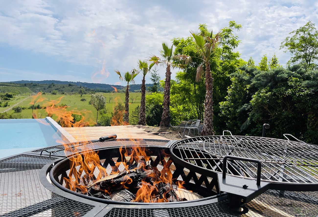 Et pourquoi pas faire une pétanque sur l’espace dédié avant de profiter d’un barbecue extérieur, assis confortablement devant un braséro ?