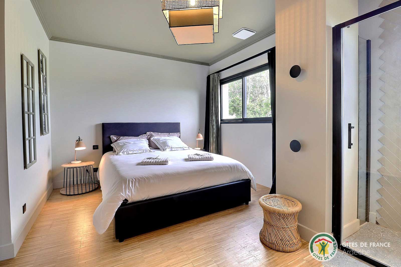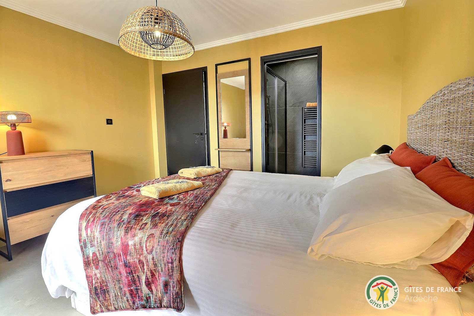 Une chambre équipée d’un lit en 160 et d’une salle d’eau privative.